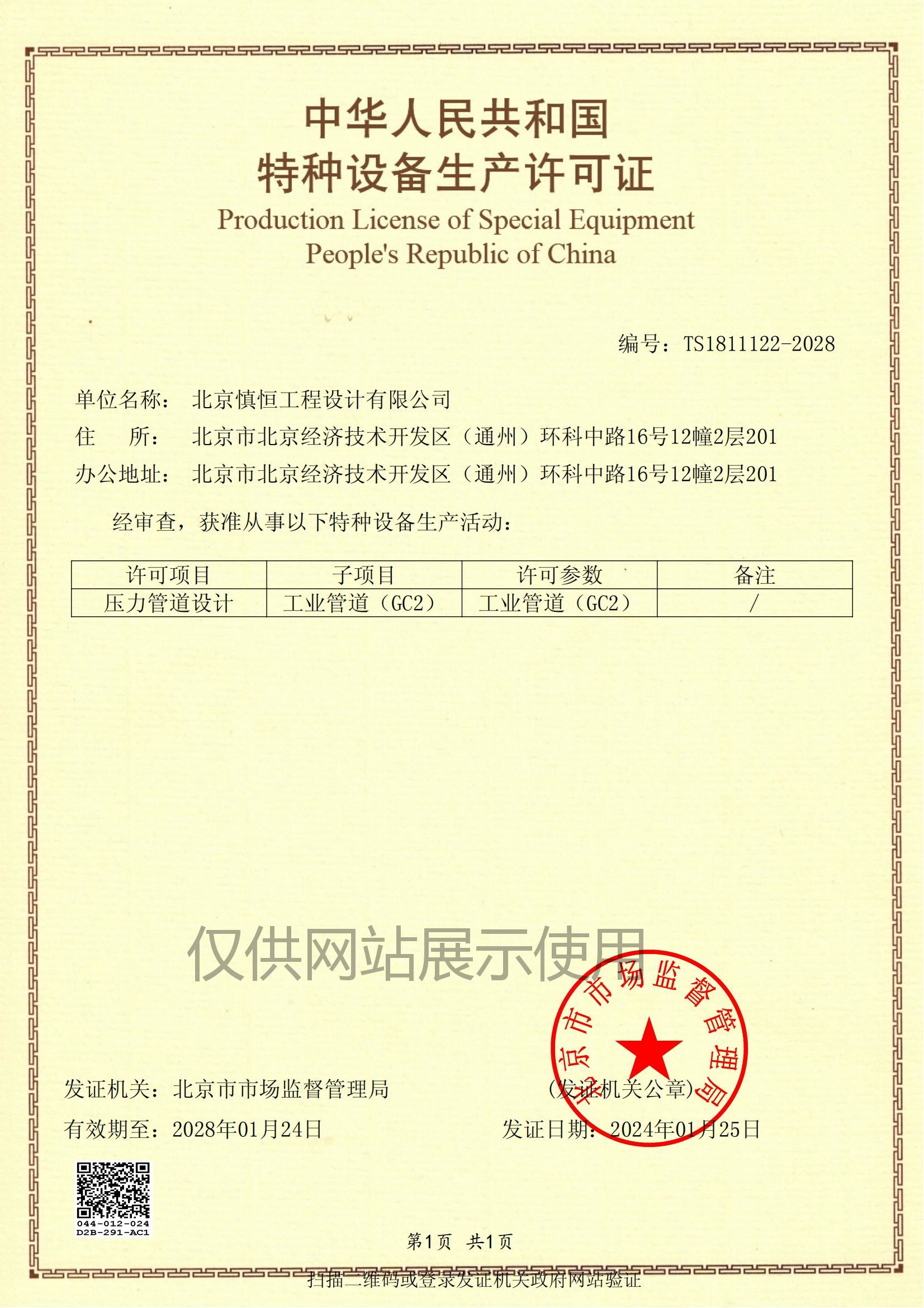 新年伊始,喜事連連,祝賀我公司于2024年1月25日,正式獲取北京市市場監(jiān)督管理局頒發(fā)的《壓力管道設(shè)計許可證資質(zhì)》,標(biāo)志著公司正式具備壓力管道相關(guān)施工圖設(shè)計的資質(zhì),為助推公司業(yè)務(wù)發(fā)展增添一份力量!